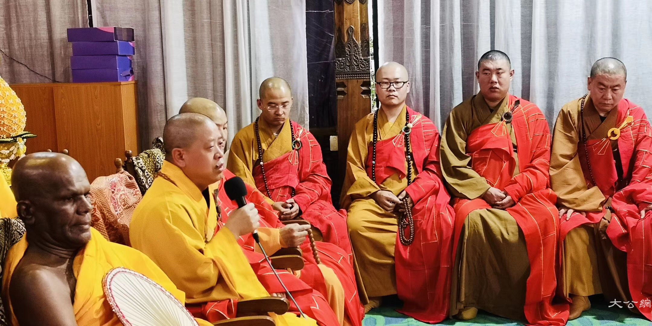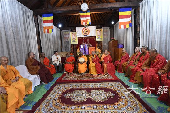 康提市政府专员钱德那·德那贡先生代表市长致辞,特别透露与山西太原市拟结为友好城市的愿景。最后,中国佛教代表团全员用各种精美供品供养长老,双方互赠礼品。