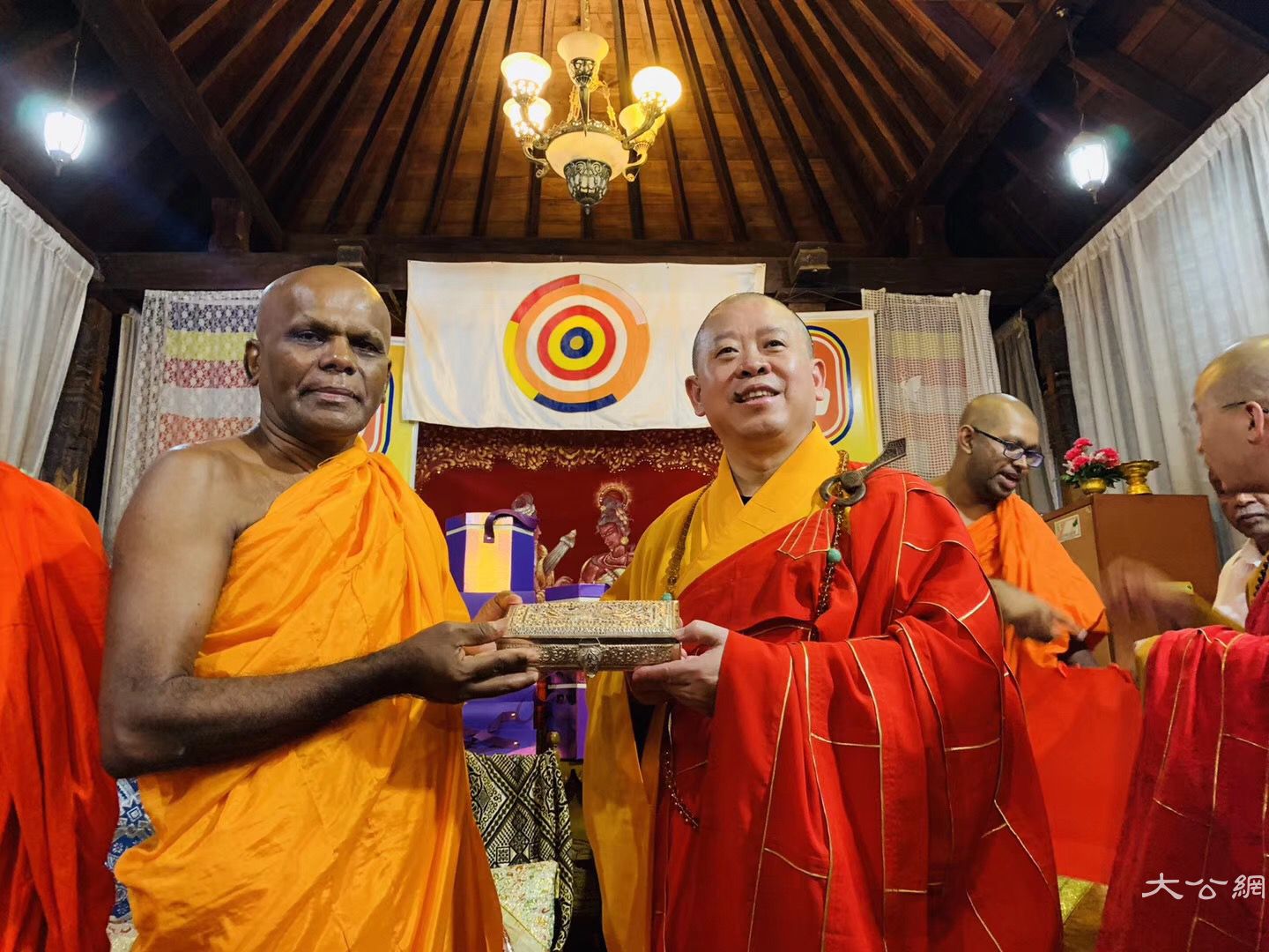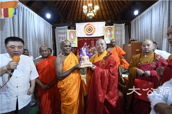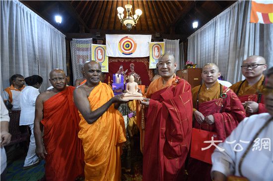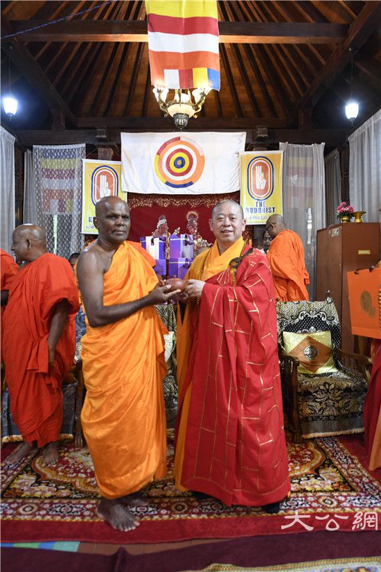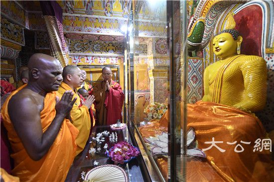 8月31日,以纯一副会长为团长,常藏副秘书长、王立主任为副团长的中国佛教协会代表团一行,在斯里兰卡阿努拉德普勒无畏山寺参加完纪念法显法师西行求法1620周年祈福法会后,起程前往康提市参礼舍利阁寺,瞻仰佛牙舍利,并与斯里兰卡副僧王阿斯吉利派副导师、舍利阁寺住持万达路维·乌帕利长老亲切会谈,为此次中国佛教代表团访斯之行画上圆满句号。这次参礼交流活动是中国佛教代表团访斯最后一处佛教胜迹,也是最为圆满殊胜的一站。