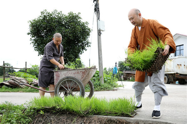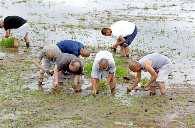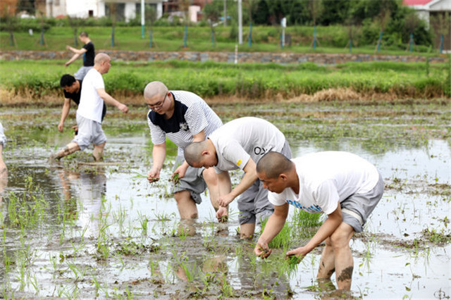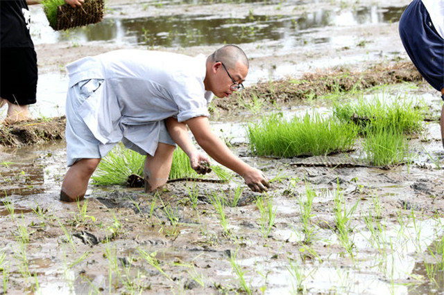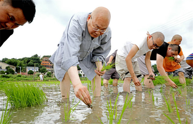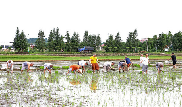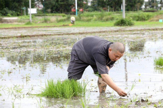 在抓好常态化疫情防控的同时,湖南佛学院不误农时插秧忙