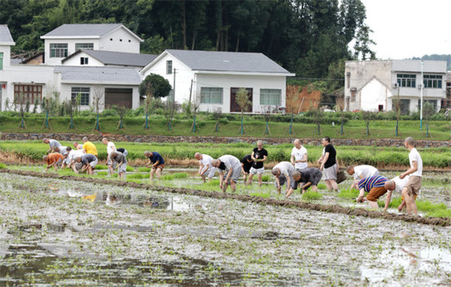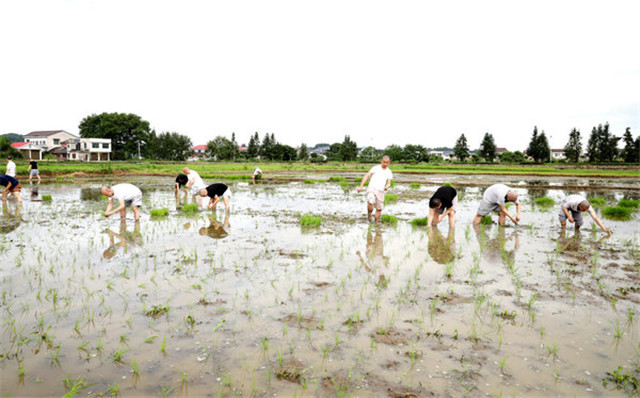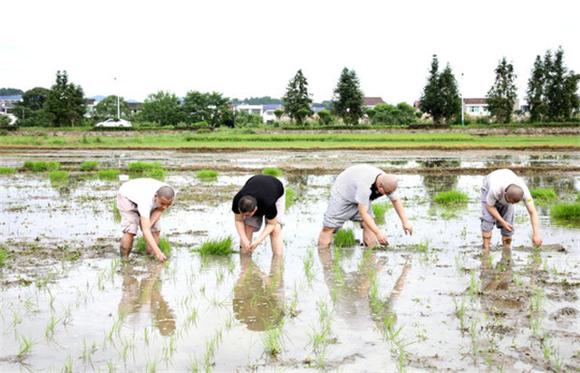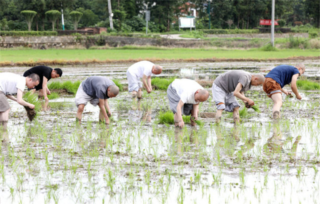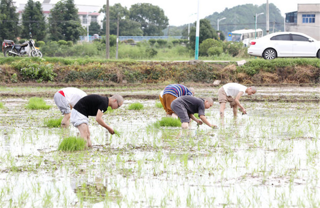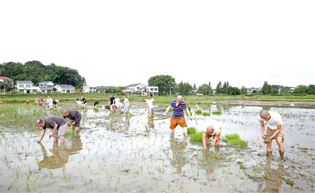 2020年6月26日,刚过完我国的传统节日“端午节”,为了不误农时,湖南佛教协会会长圣辉长老率长沙麓山寺方丈永兴法师,湖南佛学院教务长演法法师,湖南省佛教协会办公室副主任永生法师,长沙九溪古寺住持通振法师及湖南佛学院学僧前往长沙县金井镇九溪古寺农禅园、下稻田插秧,让大家通过农忙的劳动,践行佛教中国化特色,以身体力行体悟祖师宗风,不忘佛教优良传统,体验百丈怀海禅师提倡的“一日不做,一日不食”农禅并重的丛林宗风。