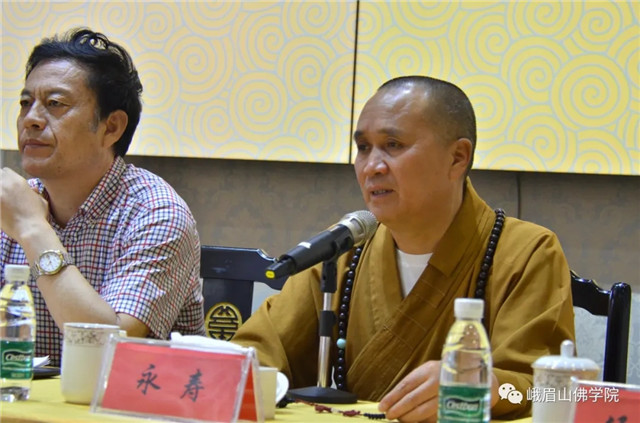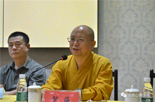 诸山大德代表智海大和尚发言。首先对峨眉山佛学院多年来对培养僧才的努力付出,为寺院输送了各方面需求的人才表示肯定。同时希望同学们将四年中系统学到的圆满的佛教智慧理论落实到社会现实中,这也是佛教中国化的具体体现:能够将佛法应用当下,解决诸山、社会、信众问题,为国家、社会、信众提供佛法的智慧资源,落实到当下虔诚地去奉献社会、服务众生。