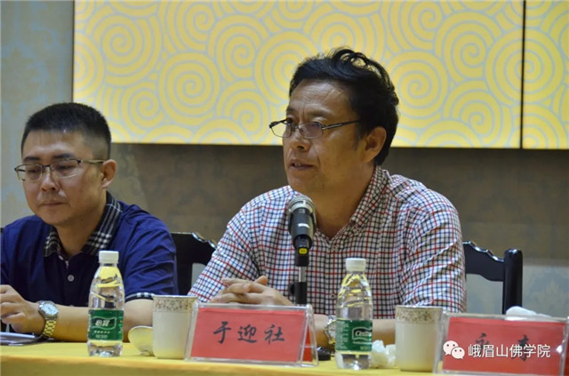 四川省民宗委一级巡视员于迎社先生讲话。其代表四川省民宗委向参加毕业典礼的毕业学生表示真诚的祝贺,并借此机会回忆佛学院创办僧才教育的历史,对为培养僧才辛勤付出的永寿大和尚、诸位法师和教师表示感谢,同时对佛学院今后的教育提出几点建议和希望:一是坚持宗教中国化办学方向。佛学院坚持在党和政府领导下,根据社会发展要求,传承优良传统,加强佛教思想研究,积极推进中华优秀传统文化进教材、进课堂的教育工作,讲好佛教中国化发展历史故事,培养更多具有正知正见的合格佛教人才,为中国佛教和社会发展做贡献。二是要落实宗教院校五年规划,加强政治教育。根据宗教院校建设五年规划和中央统战部加强对宗教院校思想教育工作的要求,继续做好思想教育工作,定期开展培训。三是加强疫情防疫工作,坚决不放松防疫工作。按照中央及省民宗委的相关要求,做好疫情防控常态化工作;最后希望毕业的学生坚定信仰,学以致用,积极践行峨眉山普贤菩萨行愿精神,在实践中不断提升人格、僧格,树立僧人良好形象。