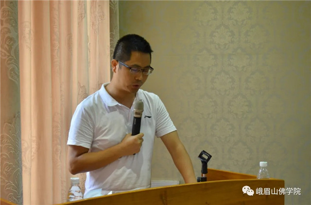 2016级男众部学生代表普严发言。他表示以后将牢记母校“智、行、悲、愿”的院训,严格要求自己,努力学习,扎实修行,荷担如来家业,为弘法利生鞠躬尽瘁。