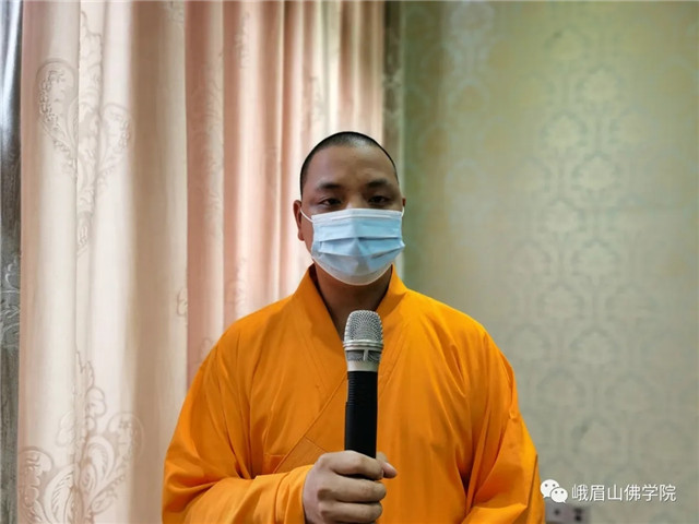 授课法师代表悟智法师发言。希望大家学习玄奘大师、太虚大师和印顺法师一生求法的精神,勉励同学们无论任何时候不要放弃对经论及祖师大德注疏的学习,坚持经论学习,用三藏十二部开启生命智慧,将自己铸造成法门龙象,践行菩萨道,趣求佛果。