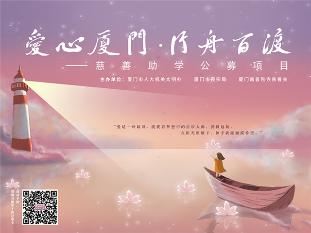 同时,此次“爱心厦门 行舟百渡”慈善助学公募项目的线上募捐页面,将在南普陀寺慈善会公众号、新浪公益、腾讯公益等各公募平台陆续上线,汇聚社会更广大的爱心慈善力量,帮助学子完成学业,成就自我,实现价值。