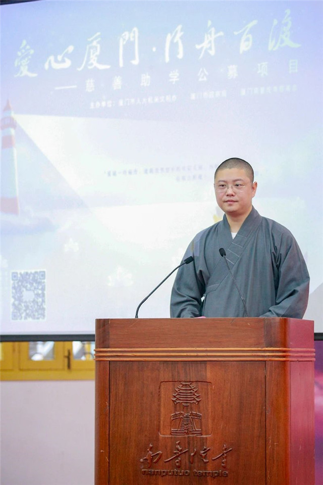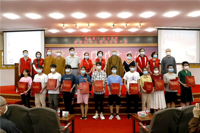 随着“爱心厦门”建设的推进,厦门南普陀寺慈善会相关工作持续开展。2020年7月29日上午,由厦门市人大机关文明办、厦门市民宗局、厦门南普陀寺慈善会共同发起的“爱心厦门 行舟百渡”慈善助学公募项目推介会在厦门举行。项目拟为贫困学子助学公开募捐金额100万元,为期三个月,助学费用仍有不足的金额由南普陀寺慈善会配比支出,2020年预计资助厦门市91个共建社区贫困生150人。