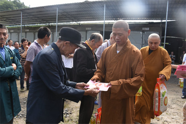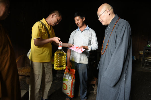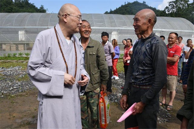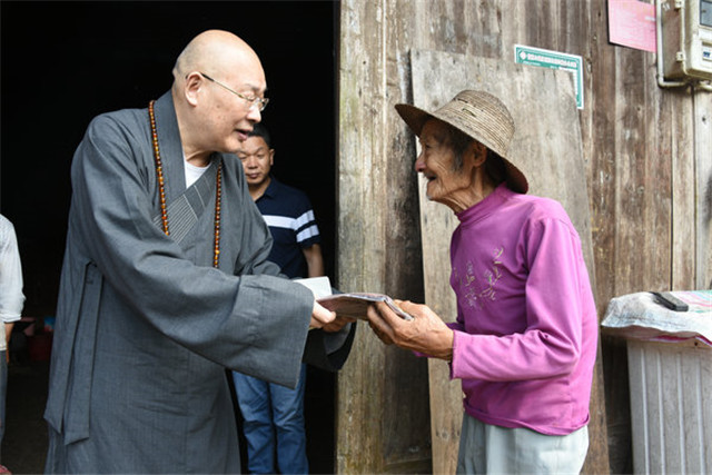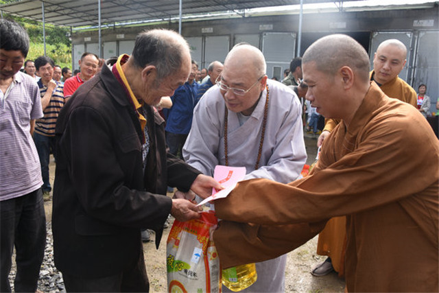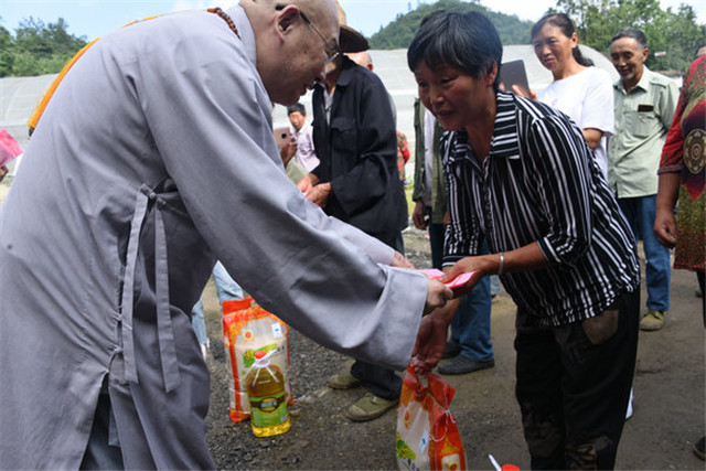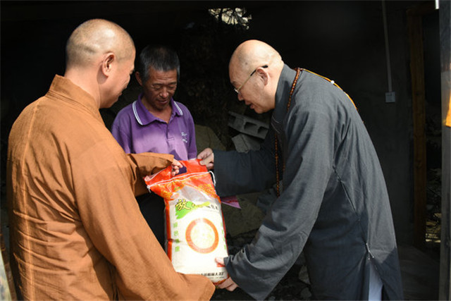 圣辉长老在路经受灾家庭时,面对倒塌的房屋扼腕痛惜;在探访贫困学生家庭时,当场留下孩子的联系方式,嘱咐其认真学习,并承诺未来的学习生活费用;在捐赠活动现场,面对受损严重的群众、更是亲切给与安慰和鼓励。并一再说,要坚信,在县委县政府的坚强领导下、在社会各界的大力支持、真情援助下,大家共同努力,我们受灾的父老乡亲定将做好灾后恢复重建的工作,恢复正常生产生活,使新农村的建设、明天一定会更美丽!