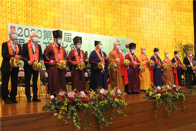 圖二:三教領袖及代表齊集台上進行開幕剪綵儀式
