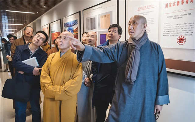 随后,演觉法师、宗性法师、怡藏法师、圣凯法师、诚信法师与相关领导共同为中国佛教协会人间佛教思想研究基地揭牌。