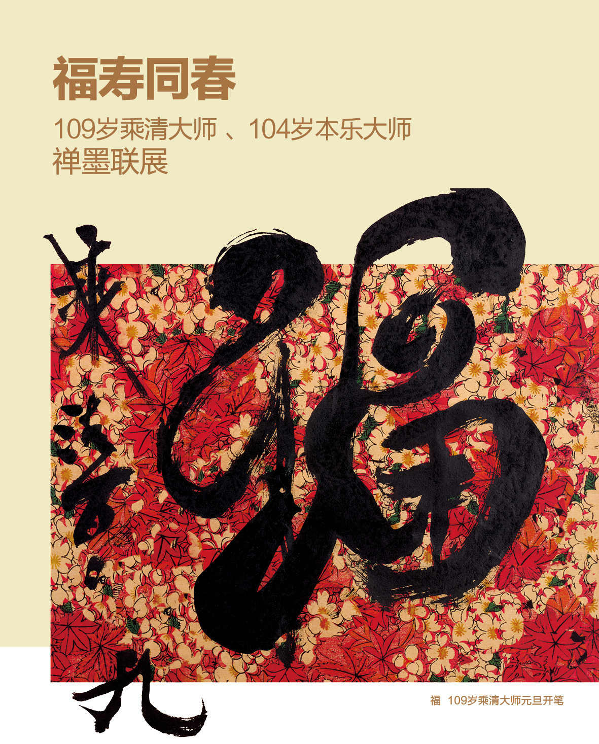2021年春節來臨,一萬個太陽吉祥文化院、東方文化藝術研究院、醬爆、阿裡巴巴太極禪苑文化空間鑫蜂維站聯合主辦《福壽同春——109歲乘清大師、104歲本樂大師禪墨聯展》,2021年2月1日在阿裡巴巴太極禪苑文化空間鑫蜂維站開幕。