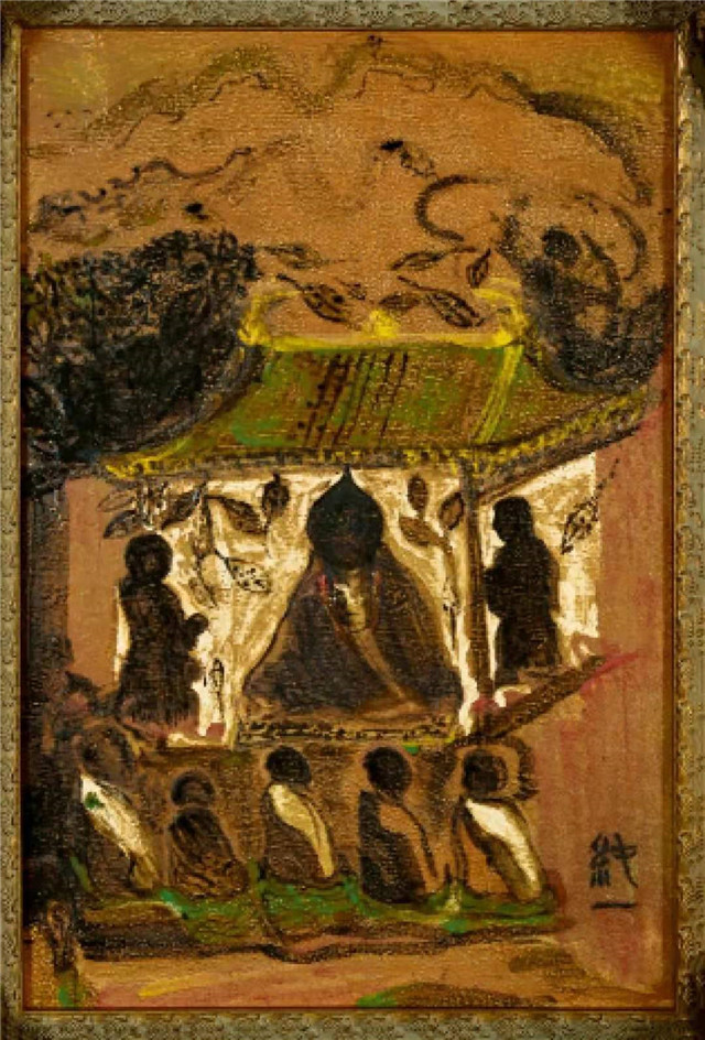 此幅瓷板繪畫《敦煌精神》是純一法師的巅峰之作,爲景德鎮1350度高溫釉下彩,燒制七天七夜。畫面表現的是釋迦牟尼佛于鹿野苑與五弟子說法圖,用瓷版畫肌理效果表現敦煌印象,畫面肌理都爲高溫過程中偶然形成,奠定了全畫深沈的基調。即使是如法炮制,也不會有第二副作品完全一樣,古樸素雅又蘊含禅意,洋溢著無限的生命力,令衆生心生渴望卻又充滿驚歎。據了解,純一法師的另一幅代表作品《絲路文明·玄奘——不朽的精神》2015年被收藏于聯合國,向世界傳遞著中國文明的包容、多元、共生的思想和佛教大無畏的精神。