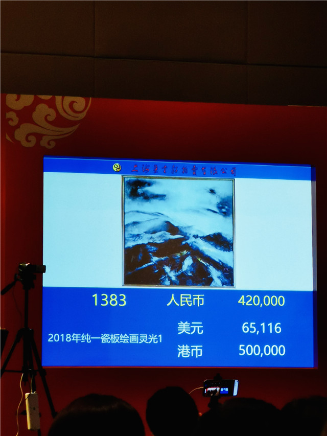 7月7日,朵云軒2021年春季藝術品拍賣會“生歡喜心”佛教藝術品專場拍賣在上海萬豪酒店舉槌,本場重要拍品——純一法師瓷板繪畫《敦煌精神》從120000元起拍,引發朵云軒的電話委托和場內買家的激烈競爭,一路從30萬競爭至62萬元,最終由場內買家以620,000元勝出,加傭金713,000元成交。而同場另兩件純一法師瓷板繪畫重要作品《靈光》《靈光2》從120000元起拍,最終以42萬元和40萬元落槌于場內買家,加傭金分別以483,000元和460,000元成交。