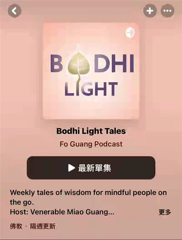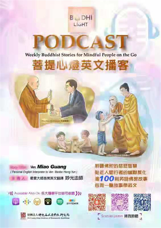 「菩提心燈」是佛光山人間佛教研究院國際中心推出的英文故事播客,由副院長妙光法師主講,將改編自《星雲說喻》的動人故事帶給英語人士。每週6-8分鐘的播客內容如同甘露法水,為紛擾煩心的生活提供安靜沉思的空間、啟迪智慧。