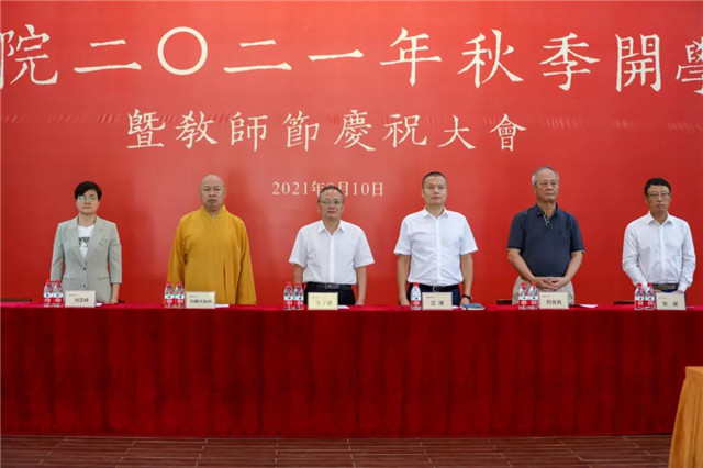 深圳市委统战部副部长、市民宗局局长王子建在致辞中对全院教职工表达了教师节的祝福,在对学院寄予厚望的同时,也对学生提出要求。他希望全体学子能把中国佛教的优良传统和新时代精神结合起来,把中国佛教的发展与中华民族的伟大复兴结合起来,把自身的学习修行与具体的社会实践结合起来。在学院学习中,要坚持信仰虔诚、学修并重,努力培养自己的各项能力,有所成长。