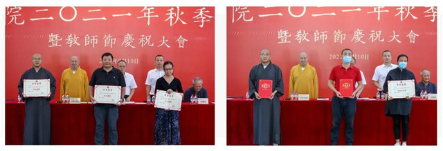 北京大学哲学系、宗教学系教授、北京大学佛学教育研究中心主任、北京大学宗教文化研究院副院长李四龙教授,中国社会科学院宗教研究所黄夏年教授,中国人民大学哲学院教授惟善法师,湖南师范大学哲学系丁小平教授等我院研究生导师通过线上会议形式出席典礼。