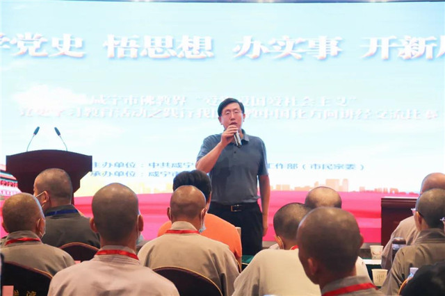 咸甯市委常委、統戰部長梁細林指出,今年迎來了中國共產黨成立100周年華誕,又臨近國慶,此時舉辦講經交流活動,體現了鹹寧市佛教界一如既往愛國愛教的優良傳統;希望本次講經活動在深入闡釋佛教文化的理念與價值的同時,對佛教經典教義作出符合時代要求的闡釋,引導佛教界踐行和弘揚社會主義核心價值觀,促進教職人員和信教群眾對偉大祖國、中華民族、中華文化、中國共產黨、中國特色社會主義的認同,努力培養既精通教義教規,又精通中華優秀傳統文化的“雙通”人才,充分發揮佛教在促進社會和諧方面的積極作用。