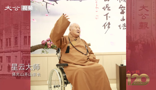 臺灣佛光山開山宗長星雲大師今日(16日)發賀詞,祝賀《大公報》創刊120週年。