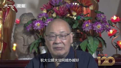 中國佛教協會副會長、上海玉佛寺方丈覺醒法師表示:120周年風雨同舟,砥礪前行。《大公報》作為一份傑出的中文報紙,與時代同頻,與人民共振,祝願大公報、大公網再接再厲,勇創輝煌。