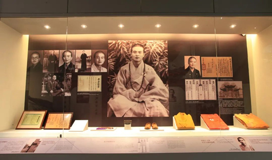 星雲大師所使用過的袈裟及僧鞋等,皆陳列在佛光山宗史館內,供人瞻仰。圖╱佛光山提供