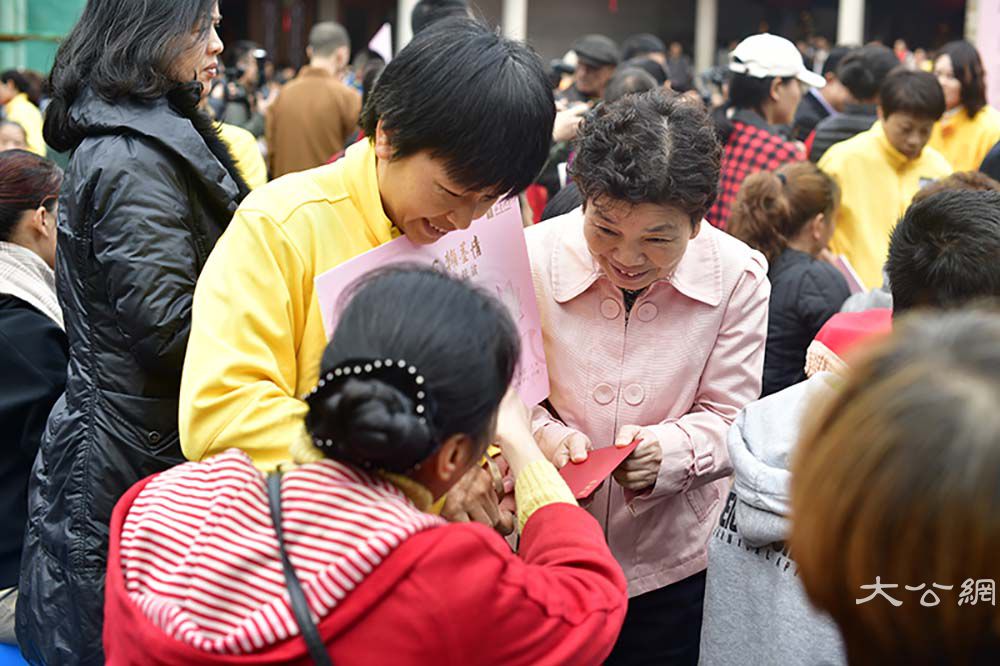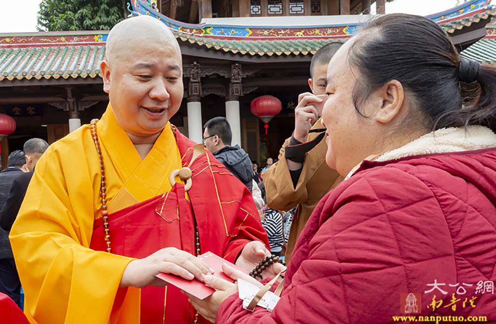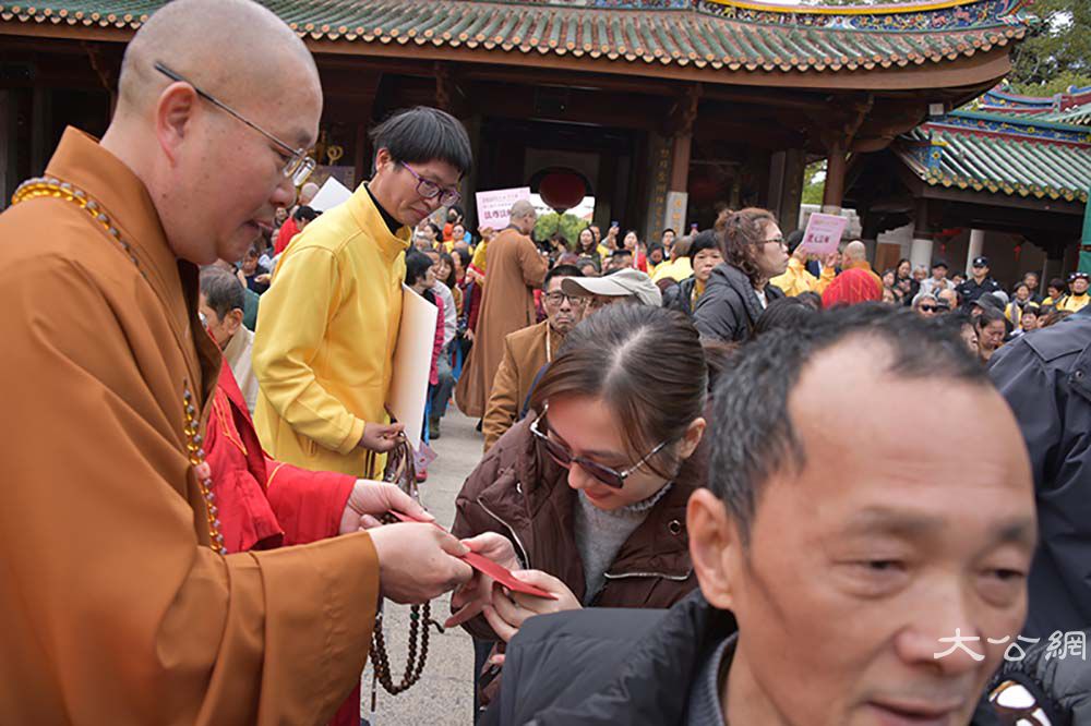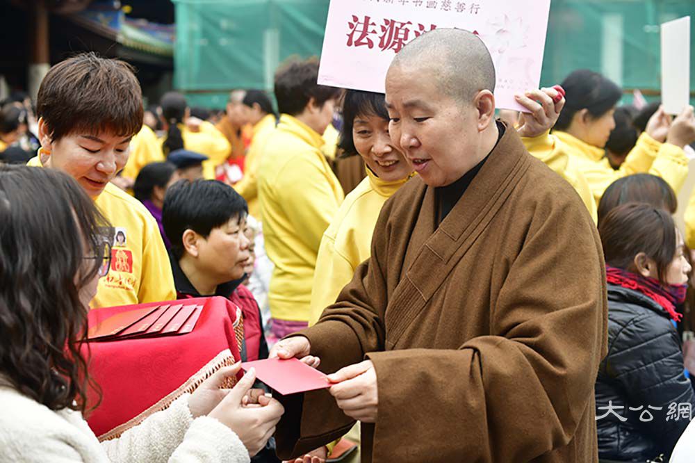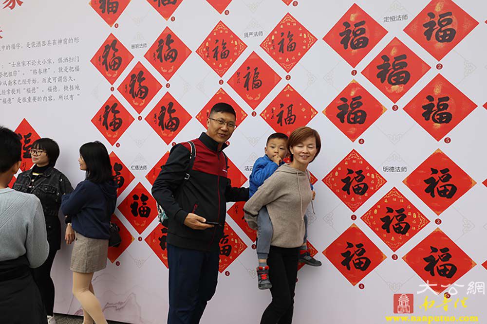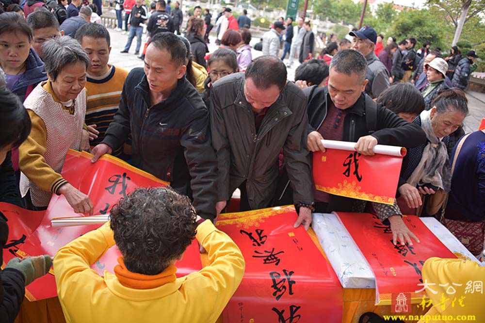 除了书画义卖活动,现场的年味儿也很浓,高僧大德和名家大师亲手为民众写“福”字,呈现百福呈祥的喜人景象,让爱心人士把“福”请回家。春节请“福”字、贴"福"字,寄托了人们对美好幸福生活的追求与祝愿。则悟大和尚祈福春联“我将无我”从元旦起开始结缘赠送,为即将到来的农历春节增加一份吉祥喜气。元旦当天还有丰富的互动活动,传统诗词之美除了书画的表达,大众也可以通过现场二维码,扫码答题,参加活动分数最高的100名参与者可结缘心经卷轴套装,元旦后会在“南普陀寺”官方微信公布获奖结果。现场的结缘经书的活动,将为大家精心准备大众常见的经书免费结缘,南普陀义工服务社的义工会在现场为大家服务,答疑如何善用经书学习佛法,生活中有什么学佛的小问题也可以和现场的义工们交流。