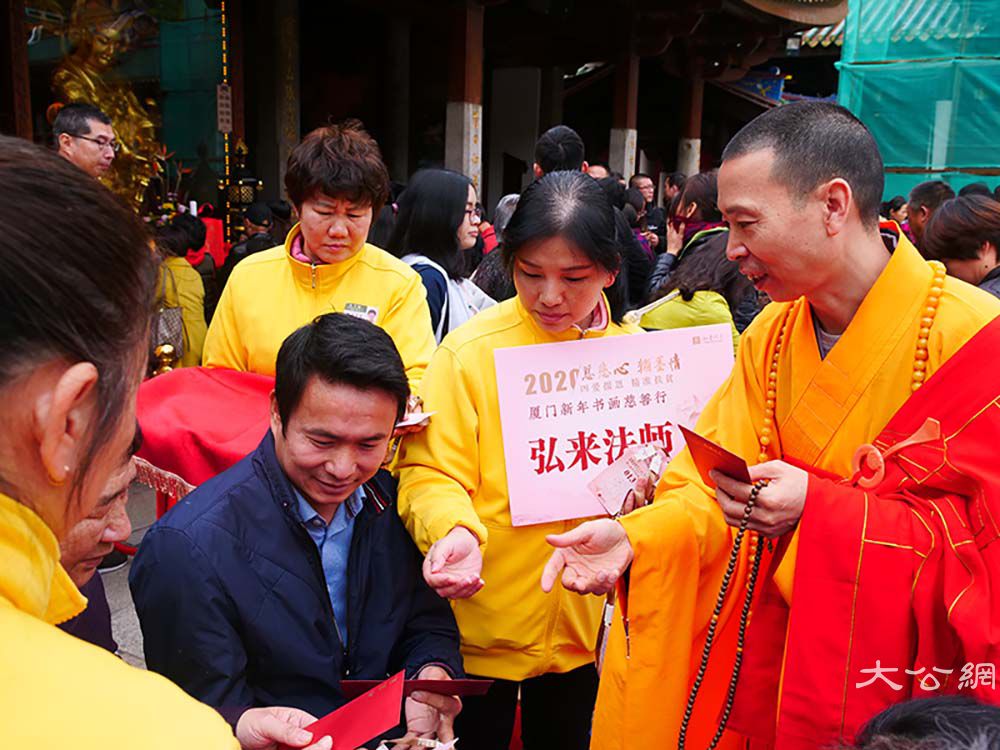 无我奉献翰墨香,爱心厦门暖意浓。2020年1月1日,在动人的梵演唱中,“慈悲心翰墨情——厦门新年书画慈善行”大型公益书画义卖活动在南普陀寺拉开帷幕,今年主题为“四爱报恩·精准扶贫”,汇聚了来自佛教界、书画界、慈善界等各界人士和海内外游客近万人共赏慈悲翰墨,传递爱心力量。