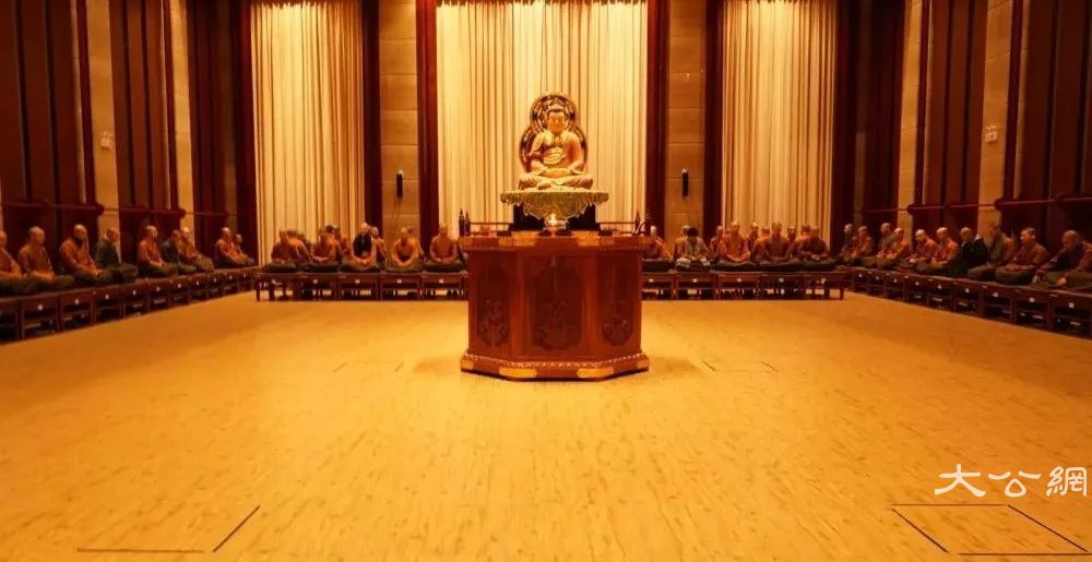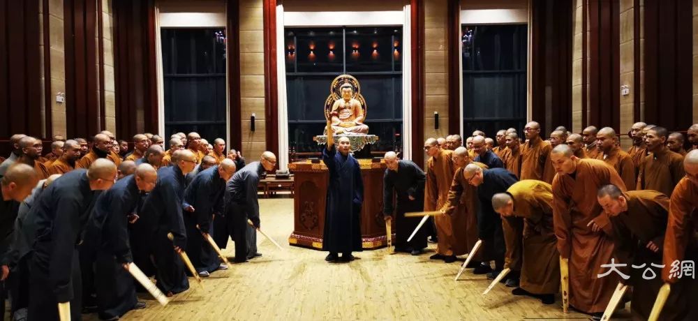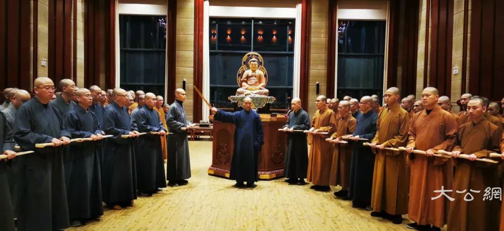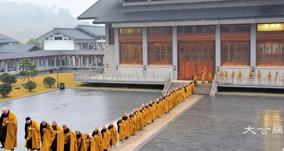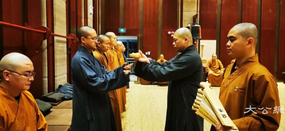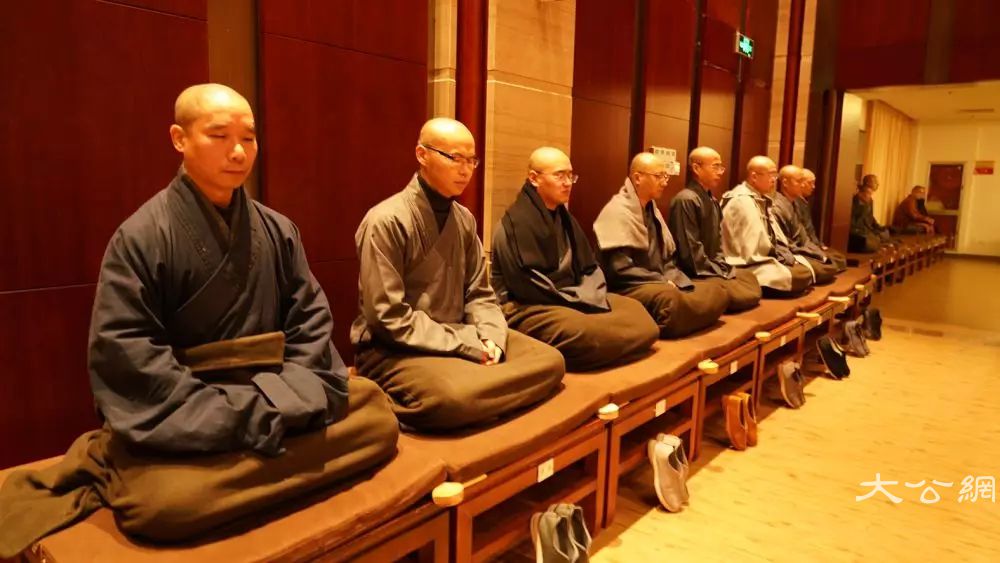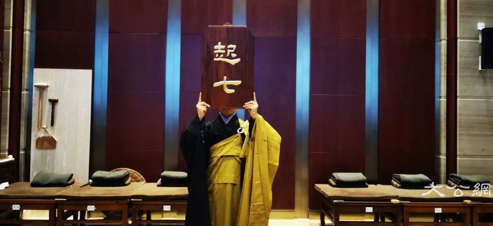 是日7时早斋过后,全体师生排班进禅堂传起七牌。