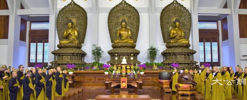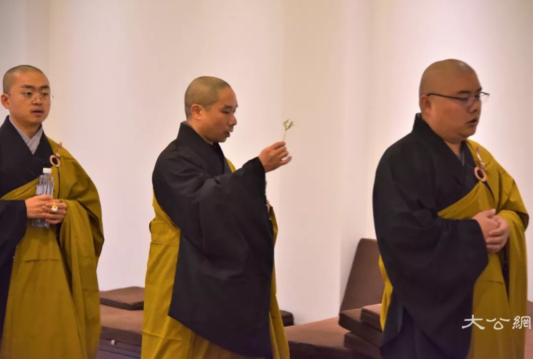 上午8:30,全体师生尽集大雄殿、禅堂,为禅七洒净、上供,祈愿三宝慈光摄照,禅七清净无碍,精进圆满。