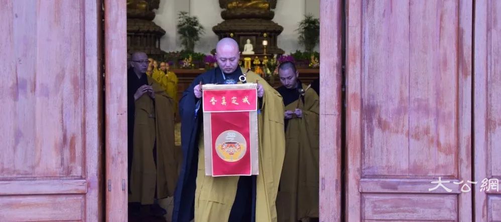 和尚执香板进禅堂,宣起七法语:“雪窦峰前法筵开,十方学子此中来。一念不生全体现,心花同是一般开。”宣毕,将香板卓于地上,喊:“起!” 当值催板,大众开始跑香。至此,浙江佛学院己亥年冬季教学禅七“起七”圆满。