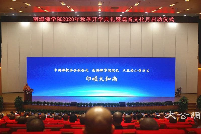 (大公网三亚讯 记者秦岩)10月19日,南海佛学院2020年秋季开学典礼暨观音文化月启动仪式在我院国际会议中心隆重举办。南海佛学院院长印顺大和尚,中国科学院院士、北京大学原校长周其凤,中央社会主义学院副院长袁莎,海南省委统战部副部长、省台办主任刘耿,三亚市委常委、统战部部长陈正光等各级政府领导、社会各界嘉宾以及南海佛学院全体师生、三亚南山寺僧俗两众出席此次活动。活动由南海佛学院副院长赵普选主持。