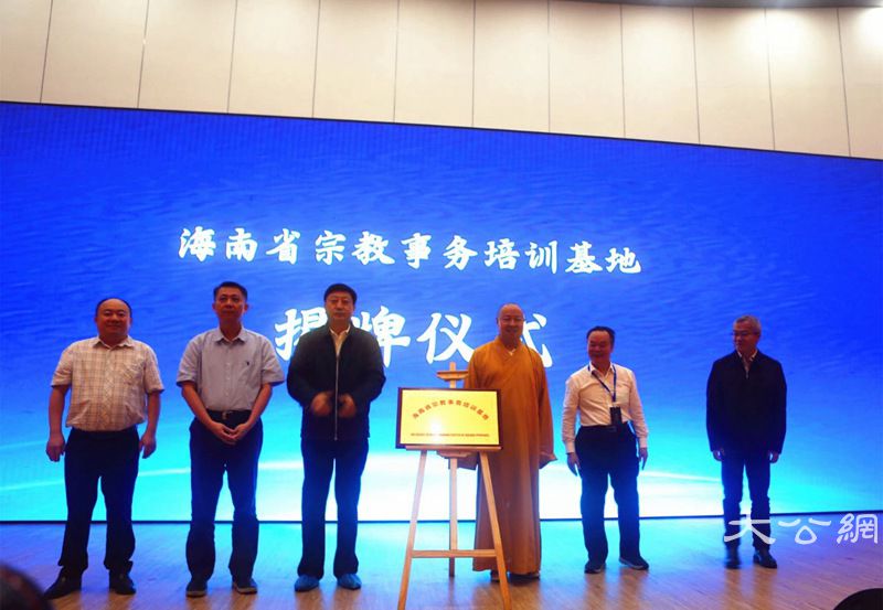 随后举行了“南海佛教文化交流中心”揭牌仪式和“海南省宗教事务培训基地”揭牌仪式。“南海佛教文化交流中心”由海南省佛教协会发起成立,旨在推动海南自贸港与南海区域各国佛教文化交流,更好地发挥海南佛教界在实施国家“一带一路”战略中加强对外交流方面的特殊作用。经海南省宗教事务局正式批准,同意在南海佛学院挂牌设立“海南省宗教事务培训基地”。