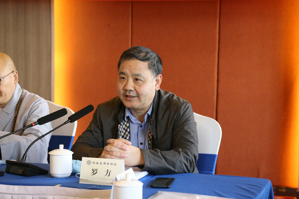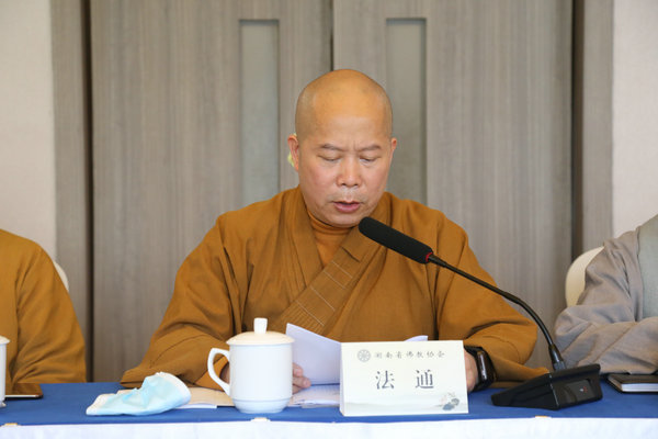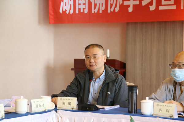 省委统战部民宗处黄昕副处长在会上还传达了省委常委、统战部长隋忠诚部长在全省宗教团体谈心会上的讲话精神,并从制度建设、宗教教职人员管理、宗教团体管理、宗教活动场所管理、宗教院校管理等五个方面阐释如何进一步推进全面从严治教,希望各市州会长带头强化思想政治引领,要将思想和行动统一到党的二十大精神上来,要长期学,深入学,让党的二十大精神深入佛教界人士和信教群众心中,全面从严治教,始终坚持我国宗教中国化方向,积极加强宗教团体的自身建设和人才队伍建设,守住安全底线,维护和谐稳定,发挥好佛教界的积极作用。