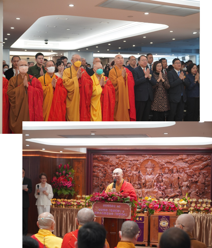 主禮嘉賓包括有: 香港特別行政區政府政務司司長陳國基先生,GBS,IDSM,JP、中央駐香港特別行政區聯絡辦公室協調部副部長陳澤濤先生、香港特別行政區政府民政及青年事務局局長麥美娟女士,SBS,JP、中國佛教協會副會長明生大和尚,以及台灣中國佛教會理事長凈耀大和尚。