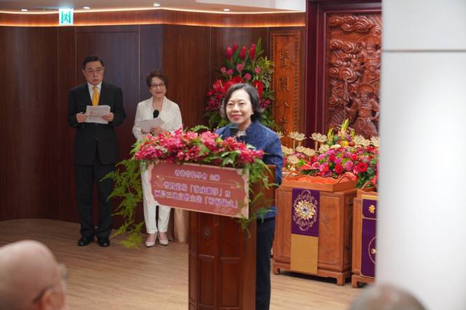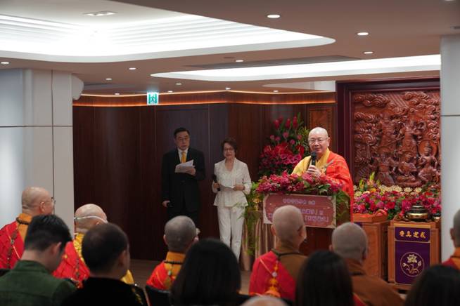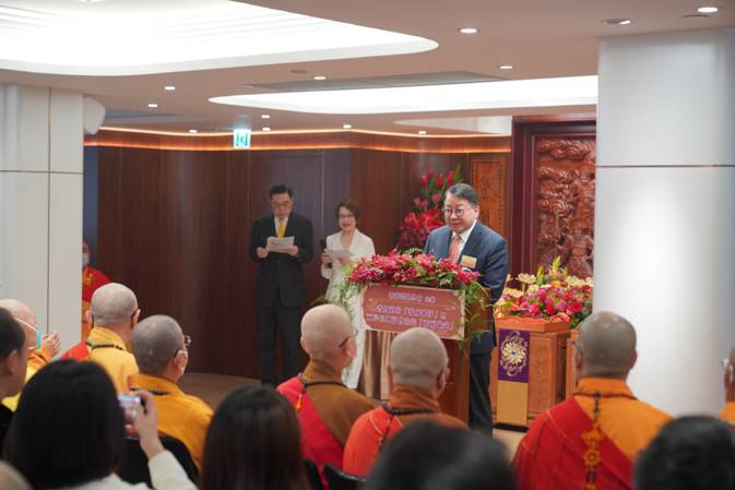 首先恭請香港菩提學會會長寬運大和尚致祝福辭。接著恭請香港特別行政區政府政務司司長陳國基先生GBS,IDSM,JP、中國佛教協會副會長明生大和尚、台灣中國佛教會理事長淨耀大和尚、香港特別行政區政府民政及青年事務局局長麥美娟女士,SBS,JP、香港寶蓮禪寺方丈淨因大和尚先後致祝福辭。以及前全國人大常委范徐麗泰女士,全國政協常委譚錦球先生先後致祝福語。